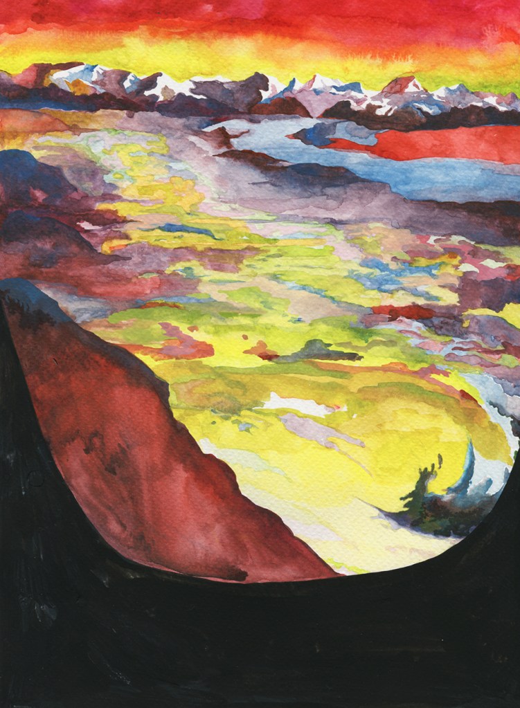 Plane’s window II, gouache and watercolor, 20x30cm, 2019