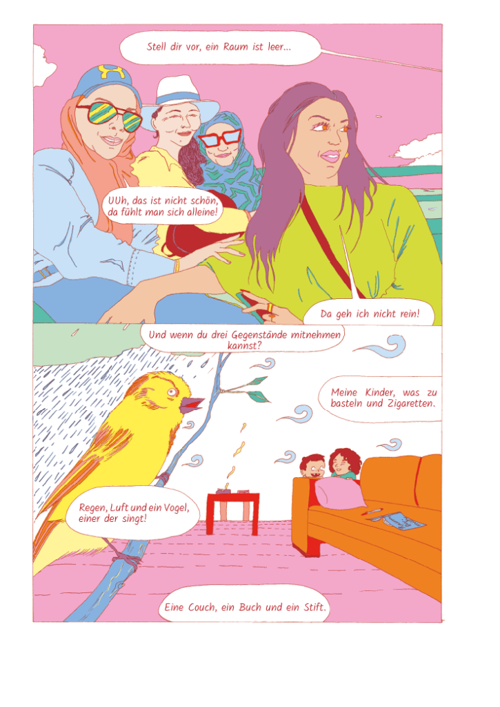 I attended and documented these actions through live drawings and note taking for the upcoming comics. The result is magazine Raum für mich (coming soon).